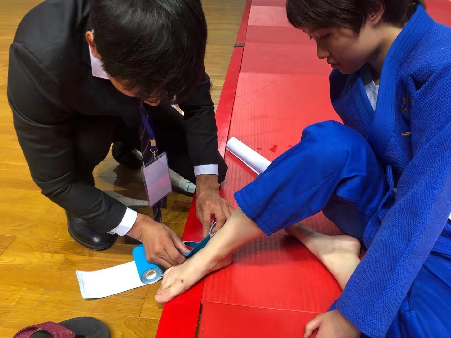 图6 岑偲仪同学带伤继续参加金牌赛的角逐