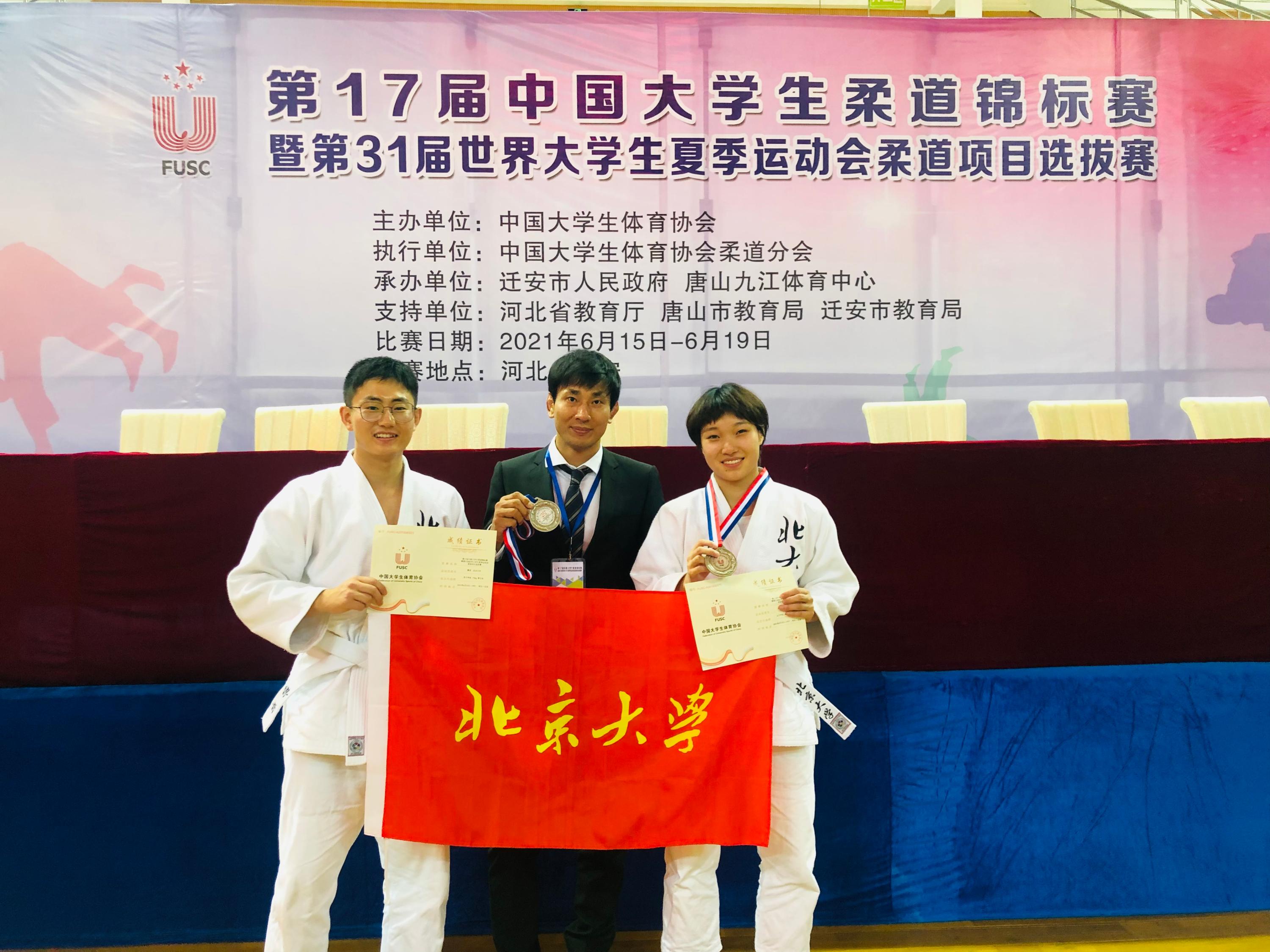 2021年6月19日,由中国大学生体育协会主办,中国大学生体育协会柔道分会执行,迁安市人民政府、唐山九江体育中心承办的第17届中国大学生柔道锦标赛暨第31届世界大学生夏季运动会柔道项目选拔赛在河北迁安圆满落幕。本次比赛有北京大学、中国海洋大学、郑州大学等34支高校队伍参与,共计265名运动员参赛。我校代表队派出来自外国语学院、马克思主义学院的岑偲仪、曹晋2名同学参加比赛,分别获得女子甲组-63KG亚军,男子甲组-73KG第五名的优异成绩。
