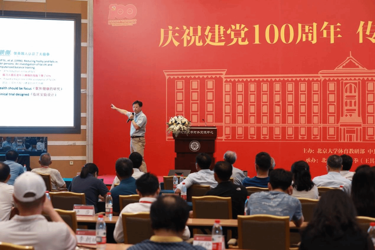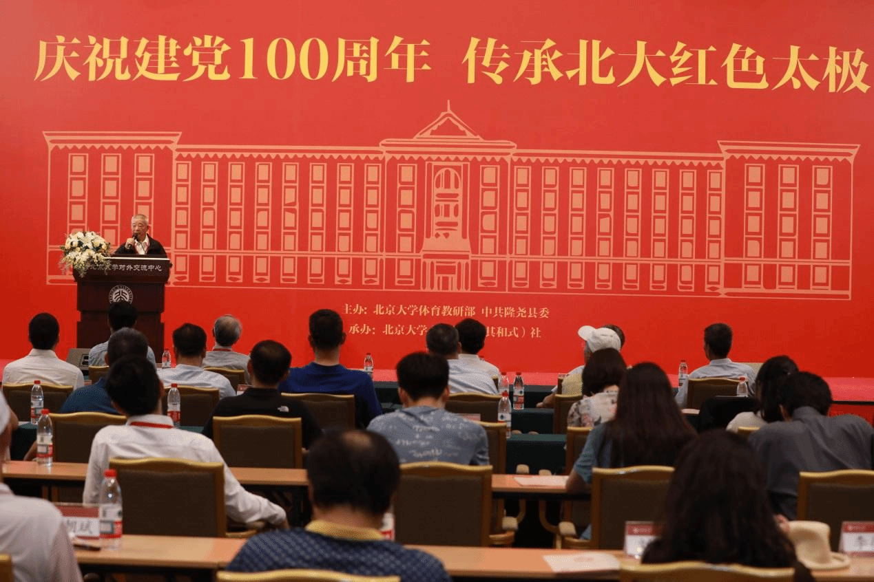 2021年7月9日下午,“庆祝建党100周年,传承北大红色太极”研讨会在北京大学英杰交流中心(阳光厅)隆重举行。