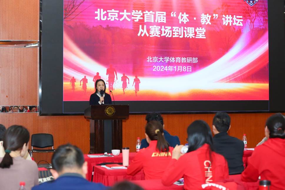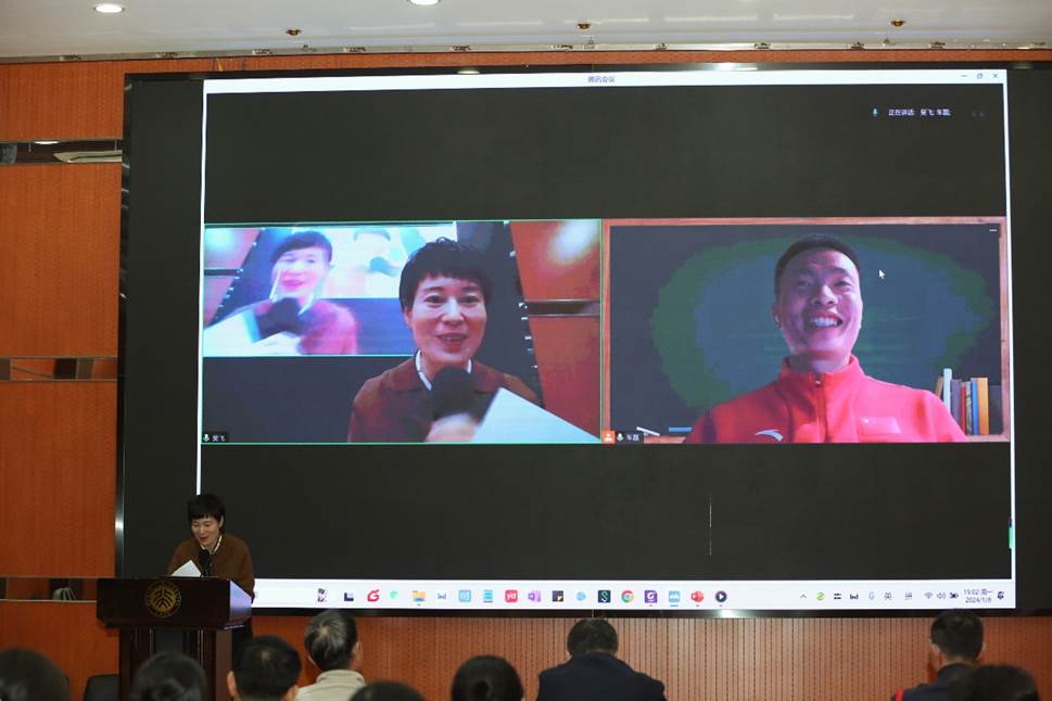 2024年1月8日下午,北京大学体育教研部举办首届“体·教”讲坛——从赛场到课堂,本次讲坛邀请到体育教研部的六位冠军教师分享体育教学经验,他们分别是乒乓球世界冠军刘伟、健美操世界冠军车磊、太极拳世界冠军柴云龙、击剑奥运冠军孙玉洁、乒乓球奥运冠军丁宁、国际象棋世界冠军侯逸凡。“体·教”讲坛由体育教研部副主任吴飞主持,北京大学体育教研部全体在职教师及部分离退休教师代表参与讲坛,500余名校内外师生通过线上直播平台参与了活动。