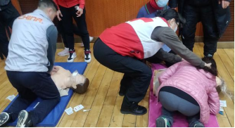 其次,参培人员分组进行实操练习,培训讲师逐一指导规范心肺复苏流程步骤,以保证参培人员真正的学的会并能够学以致用。