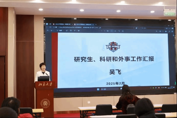体育教研部副主任吴飞做工作汇报。她从研究生教学、外事和科研三大方面入手,对寒假期间的业务工作情况和新学期的具体安排进行了详细介绍。