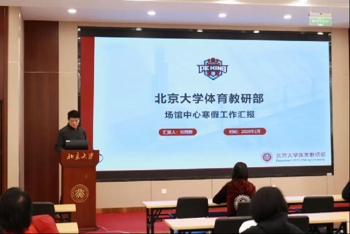 体育教研部副主任刘茂辉分享了校内体育场馆及后勤保障的最新情况,包括寒假期间各场馆的开放、改造维修和员工岗位优化等方面内容。