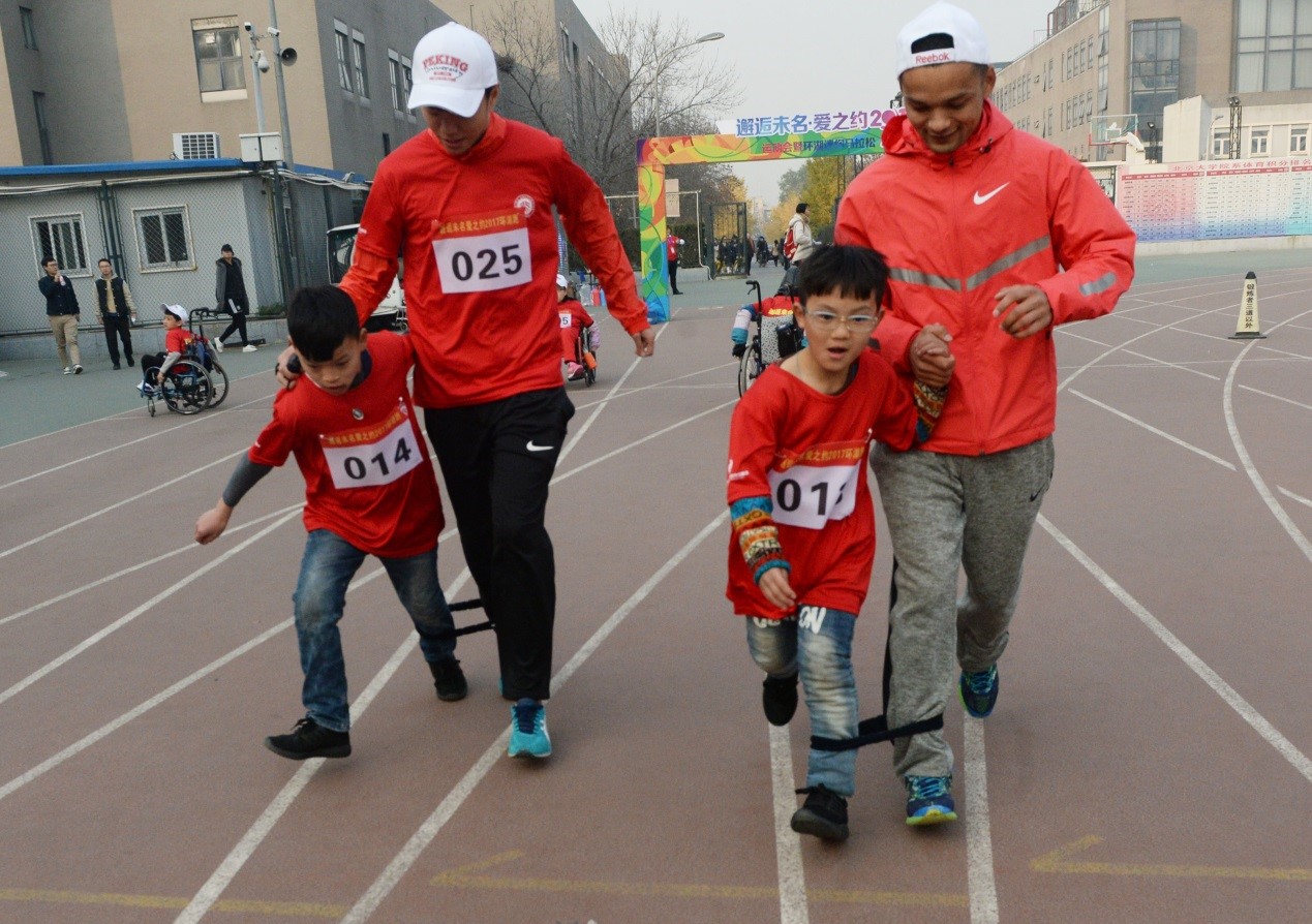当天的运动会现场,也来了很多热爱运动、充满爱心的北大校友。随后,运动会孩子们与田径队结成的“1+1”比赛小组又与这些校友们在美丽的未名湖畔完成了5公里的环湖迷你马拉松。