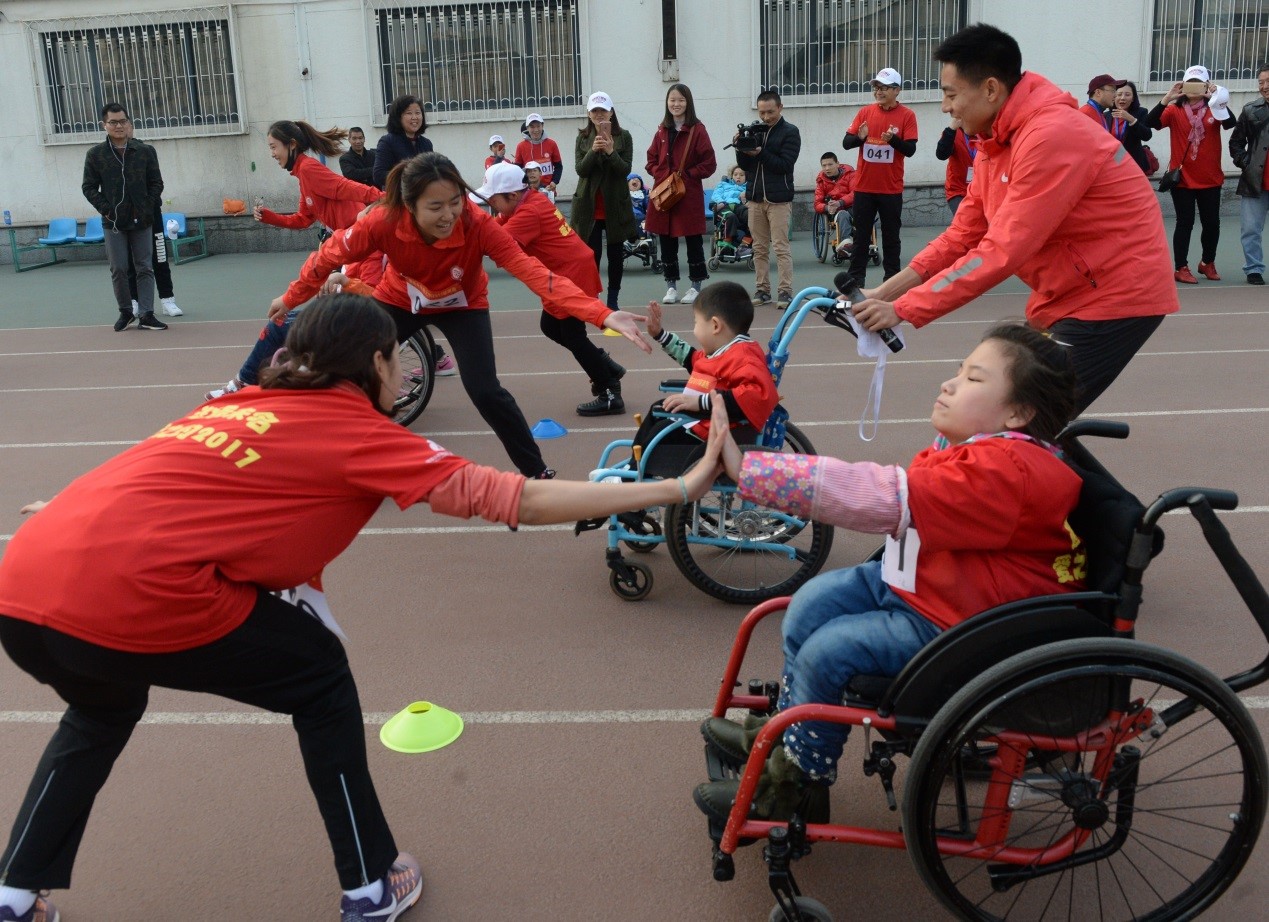 第二组技能赛包括4个项目:儿童100米跑、滑板障碍赛、轮椅转圈和轮椅障碍赛。这次的主角是山西太原爱之家和山西祁县家乐爱心园的孩子们,他们最小的只有7岁,不少是坐在轮椅上的少年。