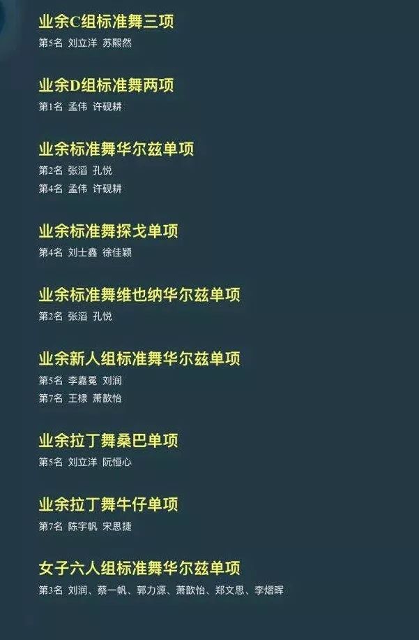 获奖选手名单