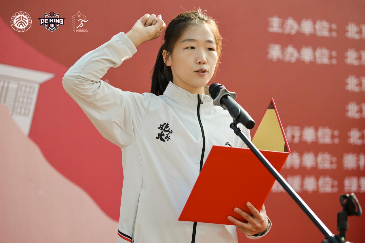 随后,运动员代表康晓蒙、裁判员代表梁辰带领大家宣誓。