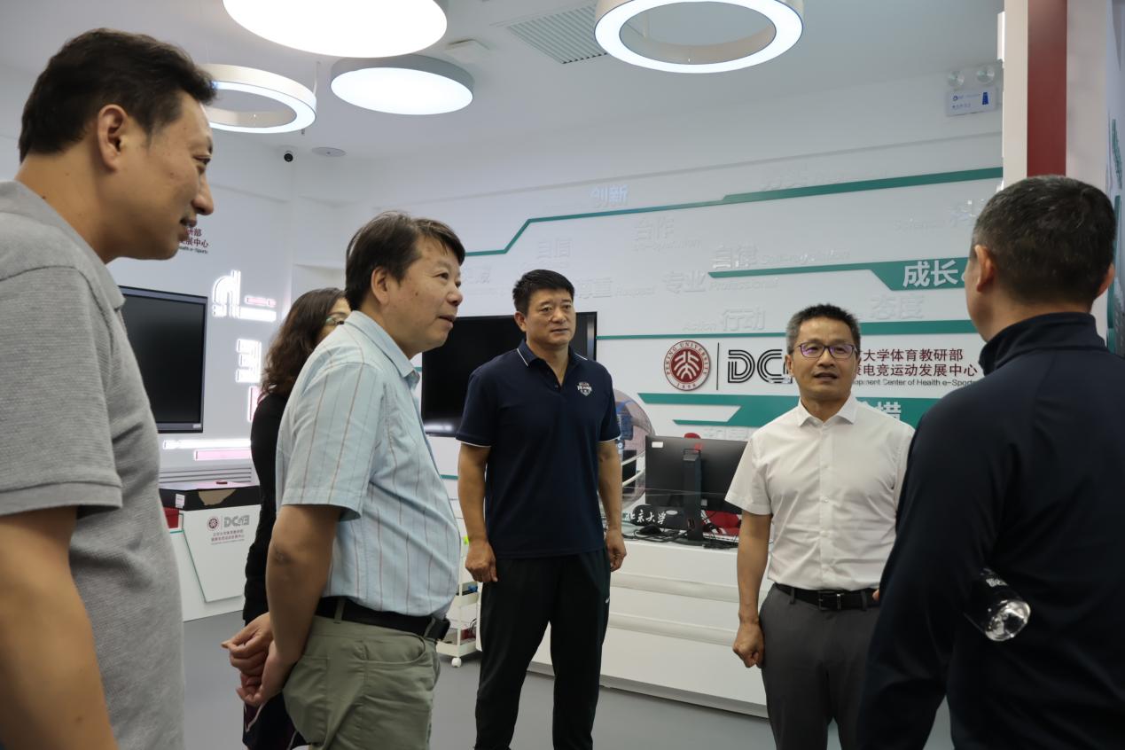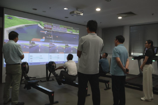 座谈会结束后,上海体育大学一行来到北大智慧健康驿站,体验了数字体育设备,并参观了邱德拔体育馆主赛场、健身房、篮球场、游泳馆等区域。