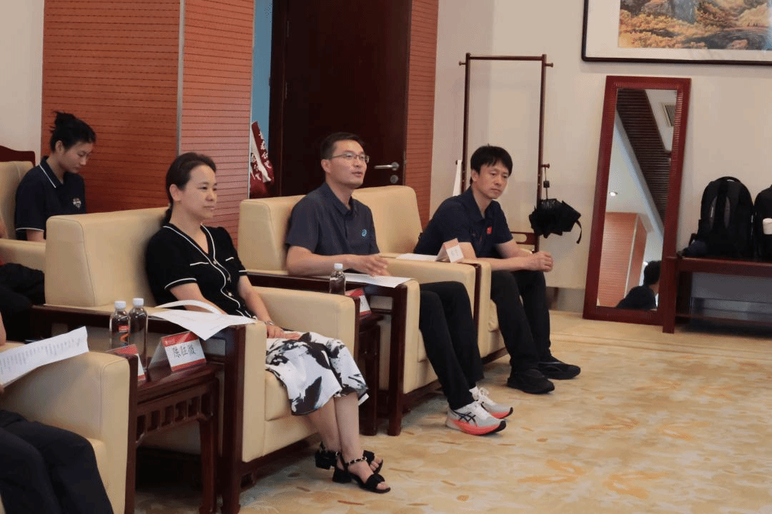 2025年7月3日,上海体育大学副校长魏建军率8人代表团来到北京大学体育教研部,就场馆建设、运营管理等方面经验开展调研交流。北京大学党办校办副主任、网信办主任蒋广学,体育教研部党委书记陈征微、主任钱俊伟、副主任刘茂辉、副主任郑重、场馆中心副主任吴定锋及场馆中心各部门主管参与座谈交流。