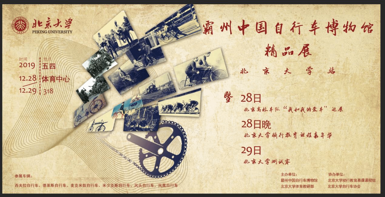 2019年12月29日星期日,在北京大学四体育馆骑划跑健身中心如期举办全国大学生场地自行车滚筒锦标赛北京大学测试赛,本次赛事,由中国大学生体育协会自行车分会(CUCA,以下简称大自协)主办,北京大学体育部承办,R1以及北京大学自行车协会承办。