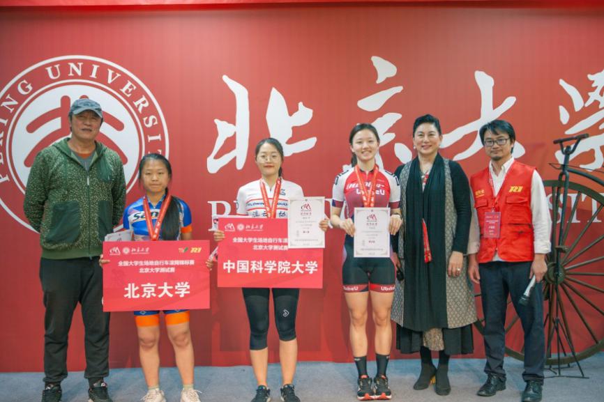 比赛最终圆满结束,下午4点,进行了颁奖仪式,大自协秘书长张锐教授,以及仲裁长中国劳动关系学院赵子江教授,和兼任颁奖仪式的大自协常务副秘书长卢福泉老师,给获奖选手颁奖。个人计时赛含金量最高的金牌,男子和女子个人综合和个人体能,分别被来自中国石油大学(北京)的彭文博和北京科技大学的安奕韦,以及中国科学院大学的俎红叶和中国矿业大学的赵紫璇获得。他们将获得JAKROO定制的象征荣誉的红色“冲刺王”和绿色“全能王”骑行服。团体项目含金量最高的金牌,男子和女子10公里接力,被中国石油大学(北京)一队和北京大学骑实很简单队获得。团体总分前三甲,东道主北京大学积分116,获得团体冠军,中国石油大学,获得亚军,总积分65,中国矿业大学(北京)积45分获得铜牌。11个项目男女前三甲请参见附录。