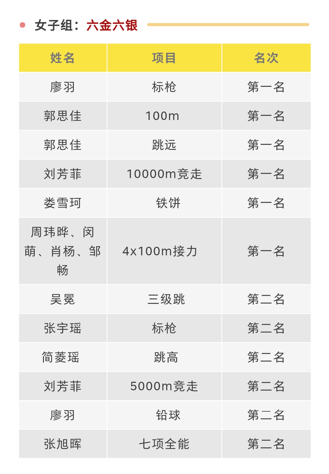 女子4X100m第一名闵萌(左五)周玮晔(左六)肖杨(右六)邹畅(右五)