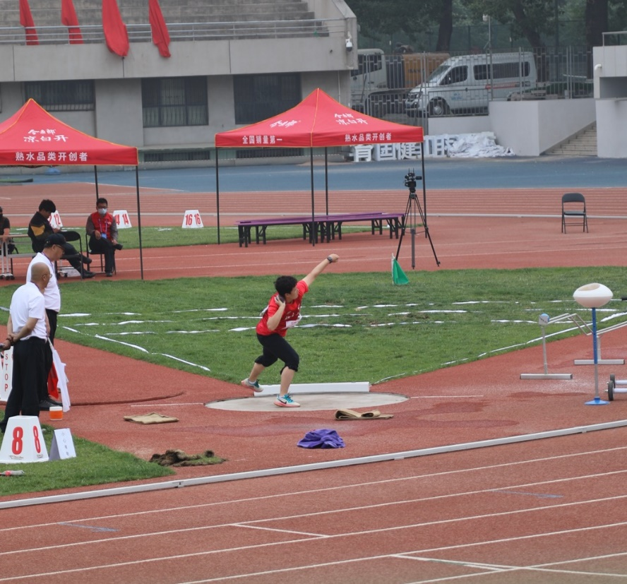 廖羽铅球比赛中