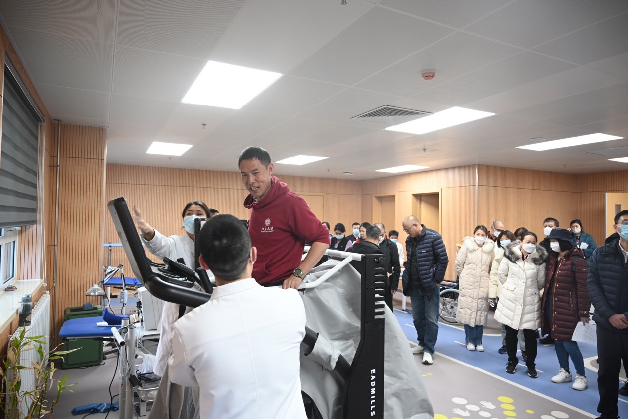随后参观了运动医学科及康复理疗科等院区特色科室和院区党建生活文化墙,体验了先进的康复器械。通过院区领导的介绍,老师们详细了解了崇礼院区的医疗工作开展、国家区域医疗中心建设、北京冬奥会、冬残奥会医疗保障等各方面的工作情况。
