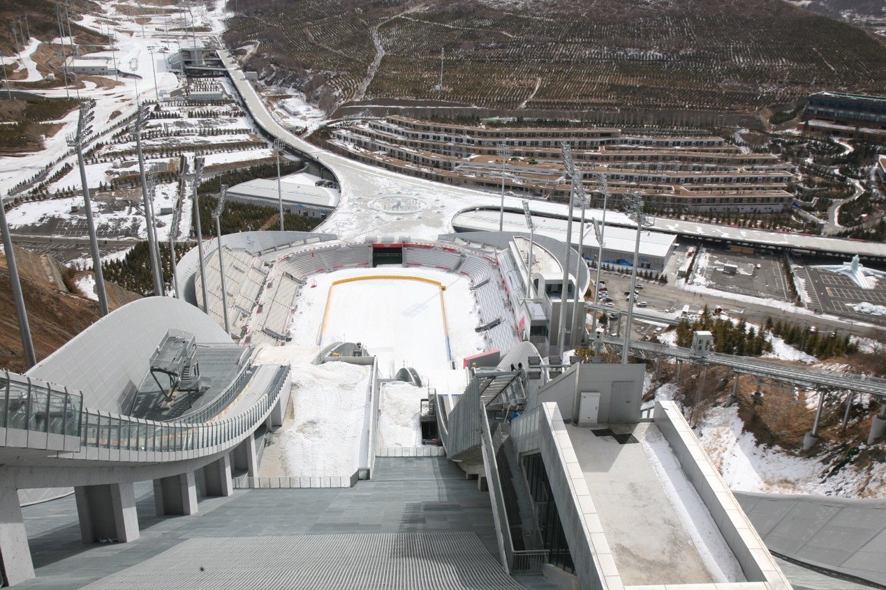 参观当天恰逢国家队训练,大家在现场欣赏到了难得一见的“跳台滑雪表演”