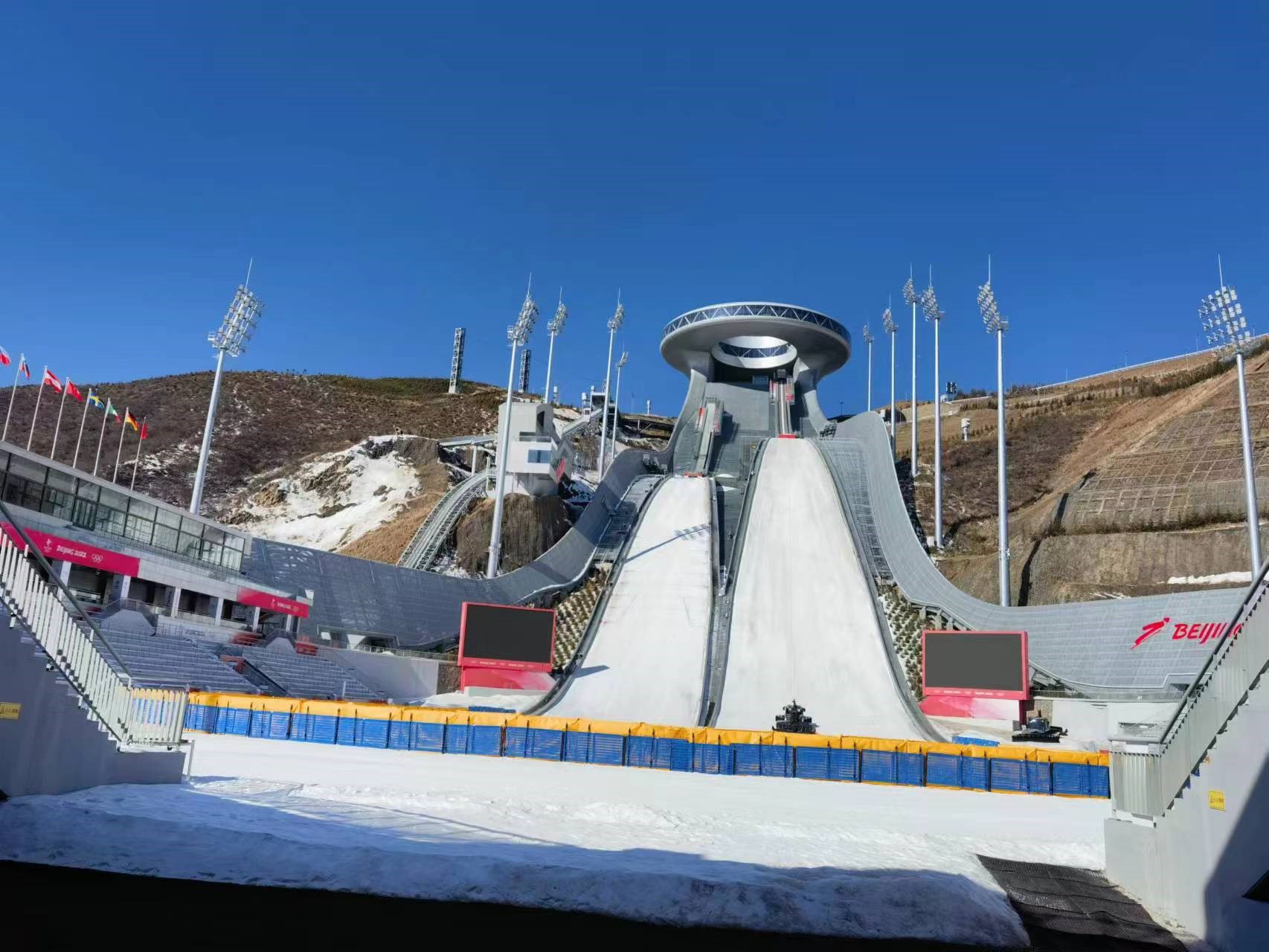 上午9:40来到了国家跳台滑雪中心,又称为“雪如意”,这里是冬奥会中工程量最大、技术难度最高的竞技场馆,也是中国第一个符合国际标准的以跳台滑雪为主的体育场馆。它拥有世界上最长的跳台滑雪赛道,是冬奥会历史上首个在顶部出发区设置大型悬挑建筑物的跳台滑雪场馆。它被誉为世界上最有设计感的滑雪跳台,融入了中国元素,宛如一柄如意。