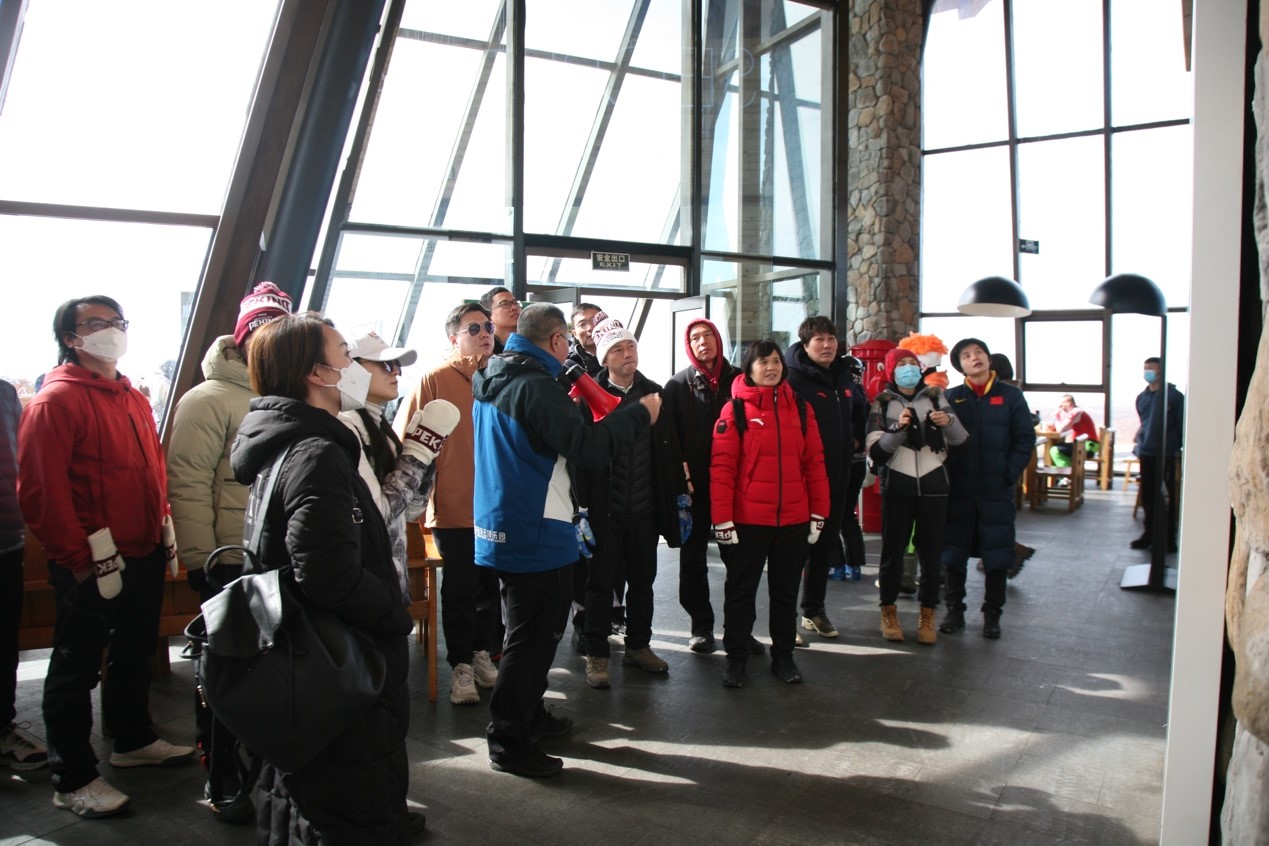 随后,大家跟随冬奥会期间作为国内技术官员在这里工作了50天的刘博老师来到室外,听他详细介绍了冬奥赛道的设置以及比赛情况。
