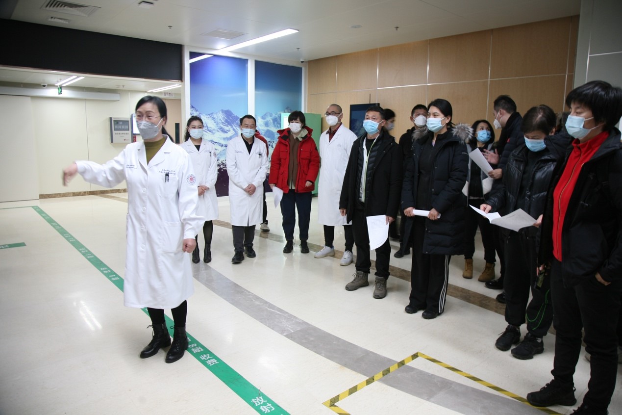 下午17:00,参加党日活动的教职工顺利抵达崇礼太子城车站,随即乘车来到本次党日活动的首站——北京大学第三医院崇礼院区。副院长刘芳、张晓伟等党政班子成员带领大家来到崇礼院区的运动创伤楼八楼顶层的停机坪。