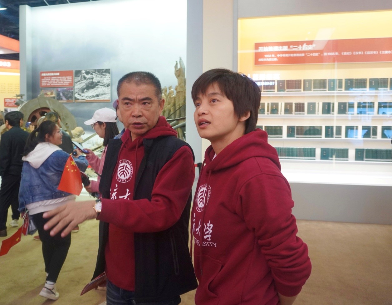 上午9时许,体教部师生步入展厅参观展览。展览以开辟和发展中国特色社会主义道路、建设社会主义现代化国家为主题,采用编年体形式,以时间为轴,事件为点,全方位回顾了从1949年到2019年共和国走过的光辉历程。通过利用声光电等多媒体科技展示手段,进行了150个“新中国第一”的展示,全方位、立体化地呈现出新中国成立70年来,中国共产党团结带领全党全国各族人民艰苦探索、不懈奋斗,成功开创和发展了中国特色社会主义,从“屹立东方”到“改革开放”再到“走向复兴”,中华民族迎来了从站起来、富起来到强起来的伟大飞跃。