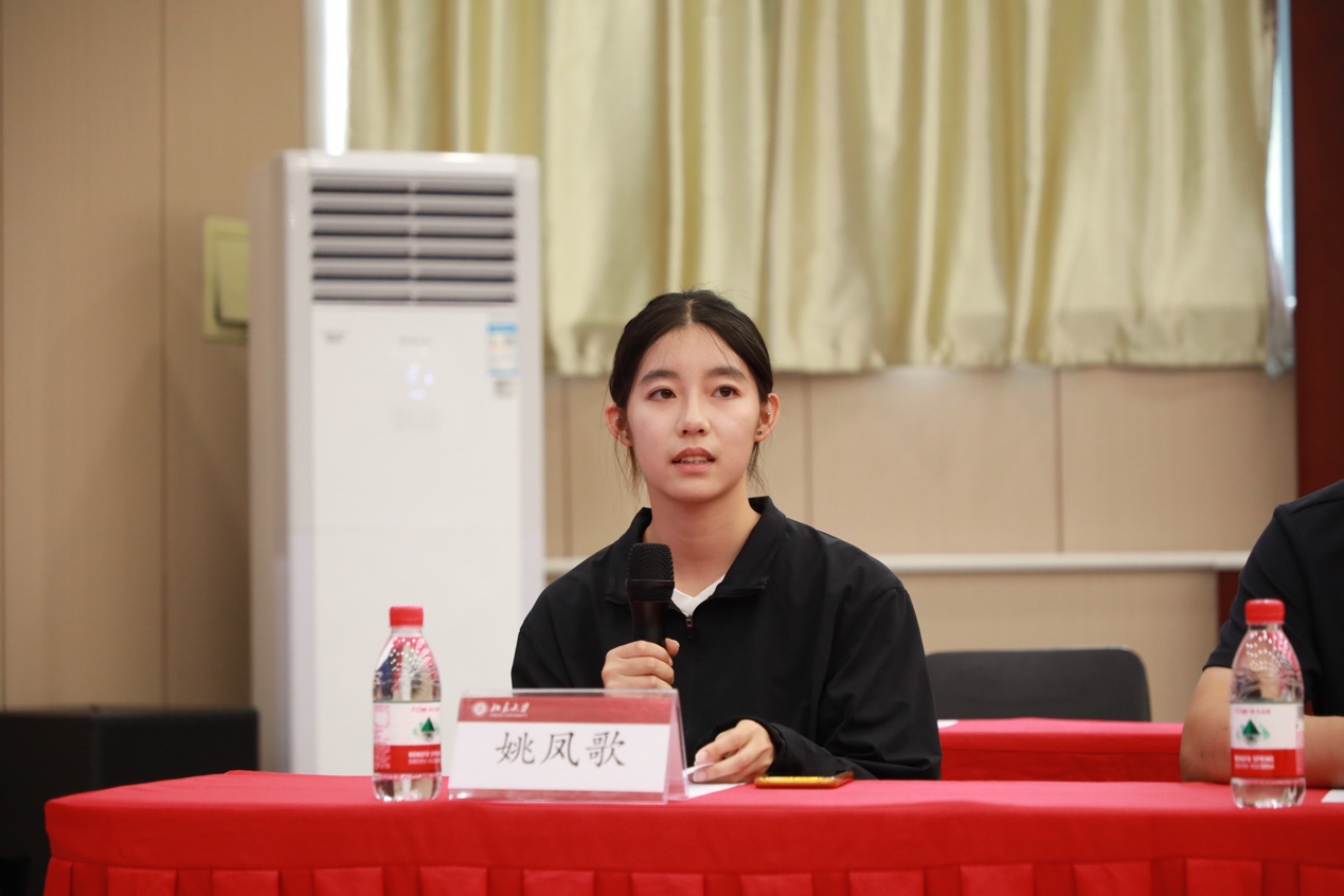 北京政法职业学院运动员代表姚凤歌发言,她谈到自己在训练中的经历和感想,并感谢教练在日常训练中的的悉心指导和队友们的鼓励,祝愿各位同学都能以体育精神为指引,在赛场上和学习中收获精彩。