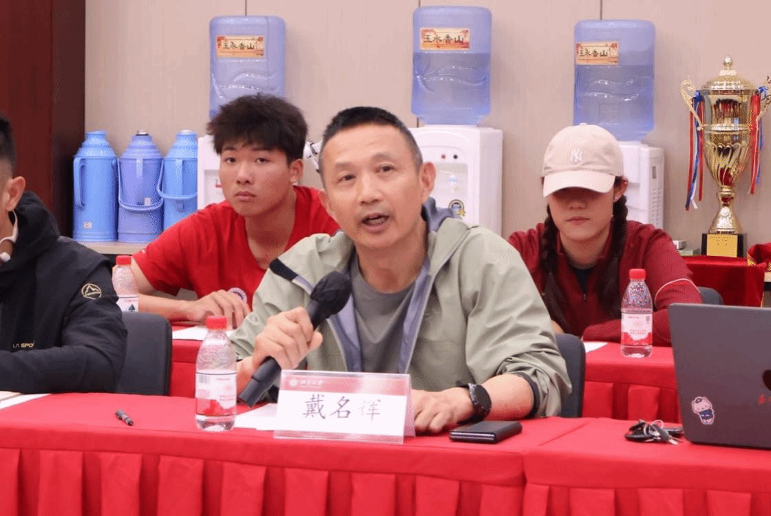 北京大学体育教研部短跨教练戴名辉发言,他表示,体育教研部的重视与支持是运动员们取得众多优异成绩最重要的基础,运动员本身的天赋和努力也很重要,教练们在体教融合背景下不断提升水平,前往全国各地参赛和训练的机会,让队伍能学到更多先进的训练方法。另外,教练需要制定科学的个性化的训练计划,加强运动员各项身体素质,预防伤病,培养队员们的团队合作精神,引导他们树立远大目标,严格自律,为达到更高水平而努力。最后,他祝愿北京政法职业学院的运动队取得更多优异成绩。