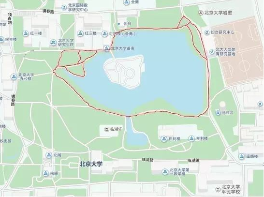 图示红色线条为未名湖沿岸有效跑步区域