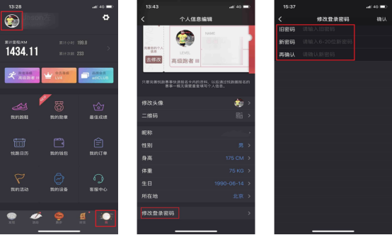 4、 更改悦跑圈登录密码