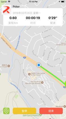 4.跑步过程中长按“结束”按钮结束跑步并回到记录页面。