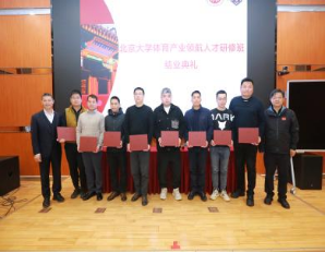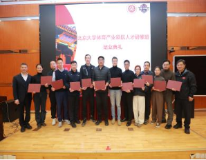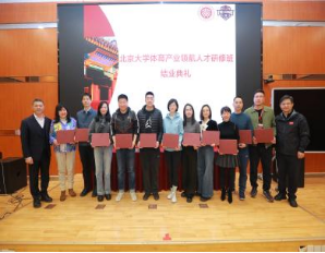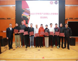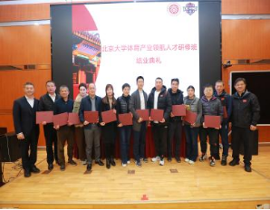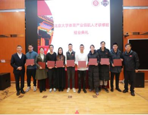 北京大学体育教研部继续教育负责人吴定锋、北京大学国家体育产业研究基地秘书长何文义,为研修班学员颁发结业证书并合影。