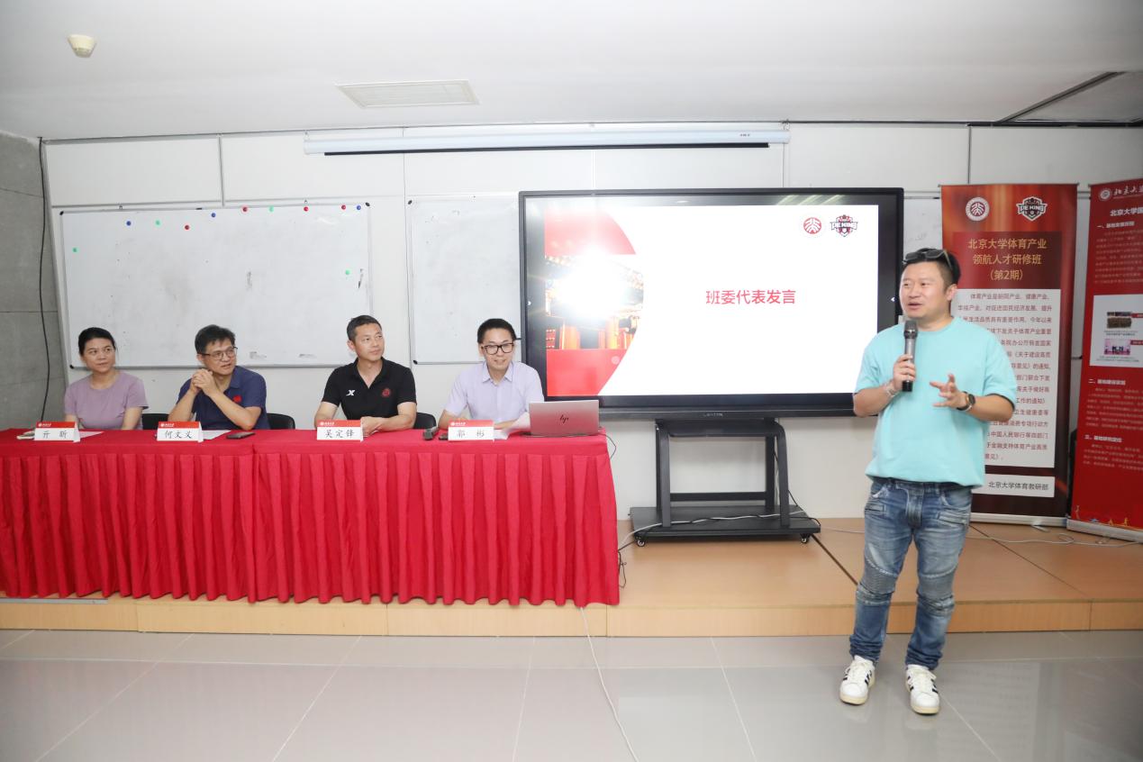 何文义在结业寄语中回顾了五天研修的精彩瞬间:行业专家前沿课程、学员项目路演、跨界交流沙龙,这些不仅促成了产业链上下游的合作意向,更凝聚了“体育人”的使命与担当。他表示,企业发展要做好顶层设计,找到企业定位,掌握好体育产业发展规律,将企业价值最大化。最后,他勉励学员之间相互合作,凝成合力打造一流体育企业,将北大所学转化为破解产业难题的钥匙,以科技推动产业升级,以创新引领行业发展。